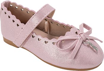 Heart perforations and a bow accent bring extra cuteness to this walker-and tot-approved Mary Jane flat perfect for stylish little steps.