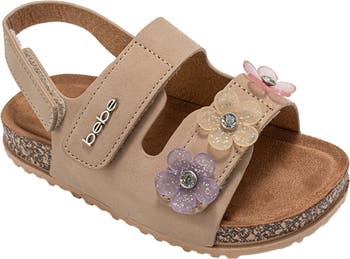 Colorful flower accents bring extra cuteness to this tot-and kid-approved double strap sandal perfect for stylish little steps.