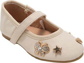 Embellished charms elevate the understated silhouette of this mary-jane flat that your little one will love.
