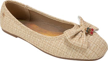 A dainty bow and beaded cherry charm bring extra cuteness to this tot-and kid-approved textured flat perfect for stylish steps.