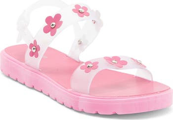 Riveted flower accents add extra cuteness to this toddler-and kid-approved double-strap sandal perfect for stylish little steps.