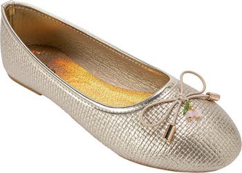 A dainty bow and beaded cherry charm bring extra cuteness to this tot-and kid-approved woven flat perfect for stylish steps.
