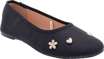 Embellished charms adorn the understated silhouette of this timeless flat your little one will love.