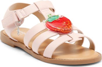 A strawberry accent filled with stars floating in liquid brings extra cuteness to this mini-approved sandal perfect for stylish little steps.