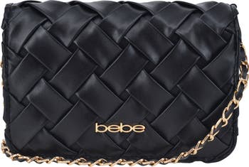 A gleaming logo plaque frames a polished crossbody featuring a woven 3D pattern and furnished with a multi‑pocket interior. Crafted from easy‑care faux leather, it’s finished with a crossbody strap for effortless, hands‑free wear.