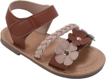 A braided strap and three-dimensional flowers bring extra cuteness to this walker-and tot-approved sandal perfect for sun-ready steps.