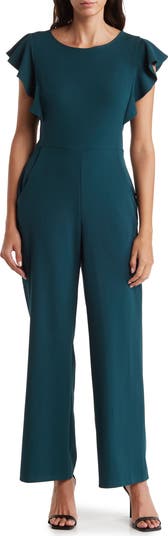 Ruffled sleeves add movement and flow to a scuba jumpsuit backed with stretch for lasting desk-to-dinner comfort.