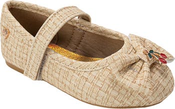 A large bow and cherry charm bring extra cuteness to this walker-and tot-approved Mary Jane flat perfect for stylish little steps.