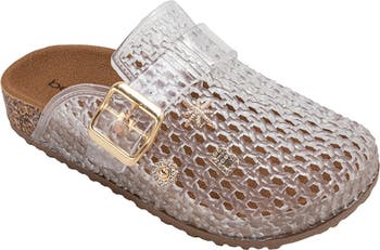 Gleaming and crystal-covered accents add extra cuteness to this toddler-and kid-approved jelly-like clog perfect for stylish little steps.