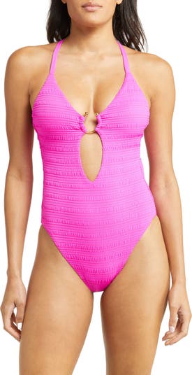 Feel your most confident at the beach in this ribbed one-piece with gleaming hardware, a sunny front cutout and fully adjustable straps.