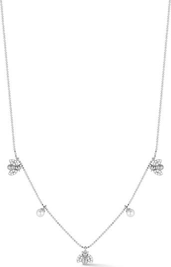 This sweeter-than-honey necklace made from sterling silver glows with cultured pearls and cubic zirconia.