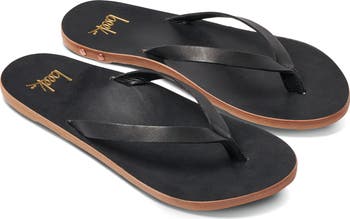 Lounge by the poolside in luxe style with this smooth leather flip-flop boasting arch support and a grippy rubber sole for steady strides.