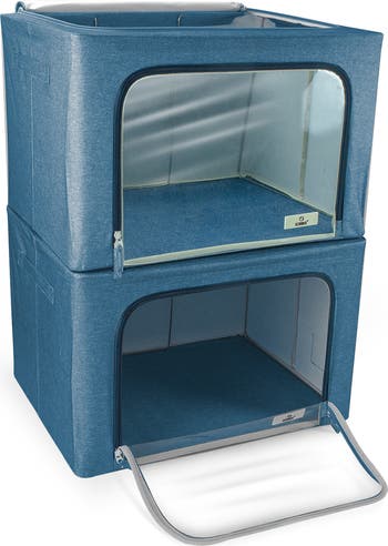Pack, zip, and transport household essentials with a clear view! The Sorbus Storage Bin set is the perfect way to store your clothing and household items. It features a front and top zipper opening, with two carry handles, and a large transparent front window. The generous size provides plenty of room for seasonal apparel, bedding, linens, holiday decorations, toys, accessories, and more. A fully zippered closure protects items from dust, pest, and water damage while the large clear window allows you to see contents at a glance. As a bonus, each bin includes a label holder to quickly classify what's inside. This set of two can be used individually or stacked together in your designated storage area. When not in use, simply collapse flat and tuck away under the bed, chest drawer, or closet shelf. Store out-of-season clothing or infrequently used items with ease around the home, office, or dorm. Don't let limited closet space cramp your style! Make the most of your wardrobe with folded garments neatly displayed in sturdy storage bins. Whether used for sweaters, guestroom comforters, towels, or your favorite designer bags, these organizers de-clutter any closet, bedroom, laundry room, attic, and more. The convenient top opening makes it easy to load contents when placed on the floor, while the front opening provides access to contents while the bins are stacked. For easy transport, use the portable carry handles and label holder to identify contents as you pack around the home, office, dorm, or travel to the car. The stackable design maintains shape with a sturdy metal frame and folds flat for storage.