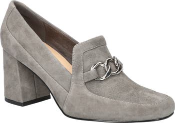 Gleaming chain hardware highlights the loafer-inspired silhouette of this timelessly chic and comfortable block-heel pump.