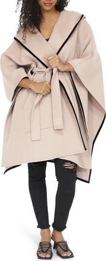 Envelop yourself in the cozy style of this hooded wool-blend cape outlined in contrast trim and outfitted with roomy patch pockets.