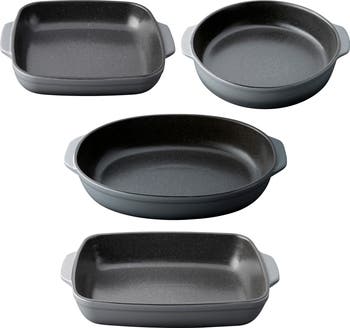 A versatile set of dishes include a variety of shapes to suit all of your baking and cooking needs.
