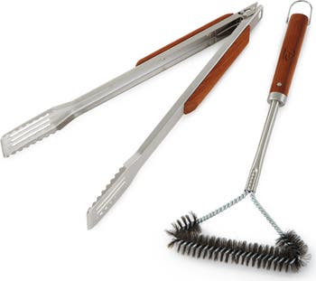 Dial in your outdoor cooking skills with thoughtfully designed stainless steel tongs made with long, riveted ergonomic handles that keep you away from the flames. When you're ready to clean up for the day, the included brush helps remove debris and has your grill working in top condition.