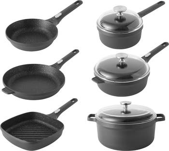 This Gem 10 Piece Non-Stick Cookware Set is designed to be the perfect fit for any kitchen. This set has removable handles for use in the oven and others have glass lids that allow you to monitor cooking progress without losing valuable moisture. The Fernogreen non-stick coating makes your cooking and cleanup easier and faster.