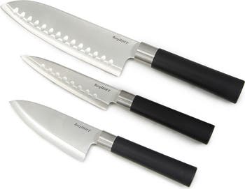 Elevate your cooking experience with our Santoku Knife Set, a kitchen essential designed for precision and ease. Strategically placed holes create air pockets to prevent food from sticking, while the scalloped Santoku knife enhances versatility for effortless slicing and dicing.