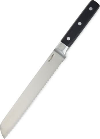 A forged serrated blade helps slice nice and even slices with this bread knife that's made from high-quality stainless steel.