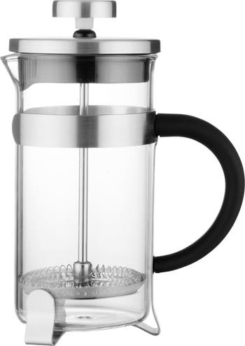 No fuss, pure flavor—that's what you get when you make freshly brewed coffee or tea with this stylish French press. Thanks to the filter press, your ground coffee or tea leaves release their flavors with a minimum of effort and instantly give you about two perfectly brewed cups of your favorite hot beverage. Made from high-quality stainless steel and heat-resistant glass, this French press with a soft-grip handle is not only very easy to use but also a breeze to clean.