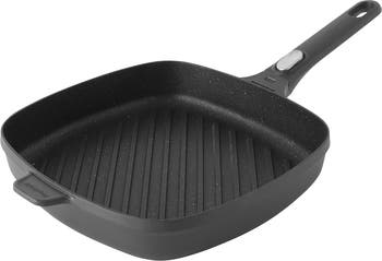 The grill pans raised ridges allow you to cook healthily and give your meat, fish and vegetables those distinctive grill marks. It doesn't just look good, it will also help you to prepare a delicious meal on each stovetop or in the oven. Easy to handle thanks to the ergonomic snap-on handle, the helper handle and the light material, this pan is an asset in any kitchen.