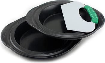 PerfectSlice Bakeware is more than quality baking pans; It's also a convenient cutting system. The unique patented guideline grid around the outer edges of every pan allows you to simply line up an exclusive PerfectSlice cutting tool, and press down to create any portion size desired. Every slice is beautifully uniform. The cutting tool with silicone handle is tough enough to cut the cake yet won't damage your pan. - 3-piece set - Color: grey - 11.8" L x 10.5" W x 1.96" D - Imported . Orders cannot be shipped to Canada, Puerto Rico, APO, FPO or P.O. Boxes