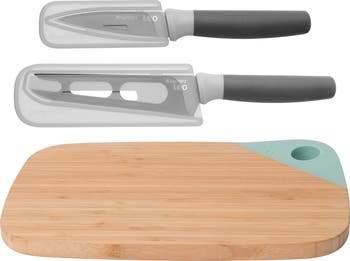 - - 3-piece set - Color: Green/Grey - 12" x 8.3" x 1.9" - Imported Set includes: - 1 cutting board - 1 cheese knife - 1 paring knife Orders cannot be shipped to Canada, Puerto Rico, APO, FPO or P.O. Boxes