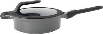 Pan-frying chicken, braising meat or sauteing vegetables, whatever your dish needs, you'll easily get it done with this covered saute pan. It's suitable for any kind of stovetop and comes with a stay-cool detachable handle that you can snap off to place the pan in the oven or save valuable storage space in your kitchen drawer. The lightweight aluminum body features a multilayered non-stick coating that ensures an easy food release and special pouring rims for drip-less pouring. To top this off, there's the clear glass lid that can be placed vertically on the body of the pan to keep your hands free for stirring and serving and has two different sized pouring areas for easy straining of various ingredients. Suitable for all cooktops including induction.