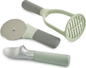 Upgrade your chef’s kitchen with this versatile utensil set, featuring a stainless steel ice cream scoop, pizza cutter, and potato masher—all in a perfect blend of functionality and style.