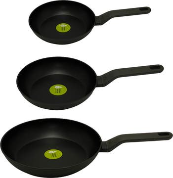 - Set includes: 8" fry pan, 10" fry pan, and 12" fry pan