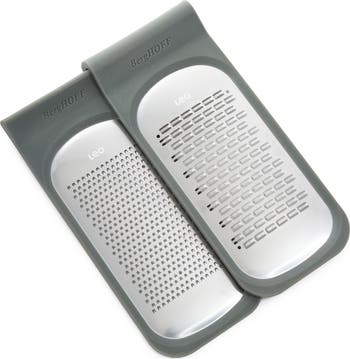 Easy to use as one grater or slide apart for individual use, this dual-sided grater features a coarse side and a ribbon on the other to grate, shred or slice your favorite ingredients.