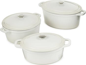 Includes: 5-quart Dutch oven with lid, 7-quart Dutch oven with lid and 8-quart Dutch oven with lid.