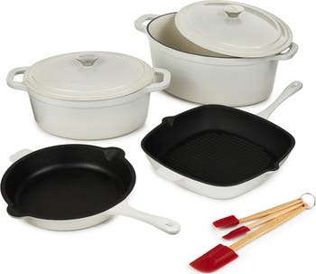 Perfect for any home cook in the kitchen, this set features a fry pan, a square grill pan and Dutch ovens made from cast iron.