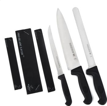 Perfect for upgrading your kitchen or gifting to your favorite cook, this stainless-steel set features soft-grip handles and includes a chef, scalloped and utility knife.