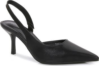 A d'Orsay silhouette brings a retro vibe to a slingback pump framed by a pointed toe to elongate your special-occasion looks.
