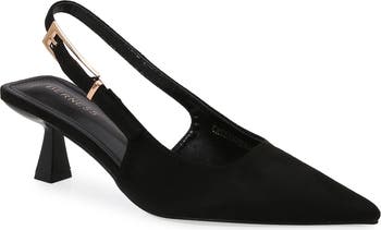 Polish any outfit with this pointed-toe pump featuring an adjustable slingback strap and low kitten heel.