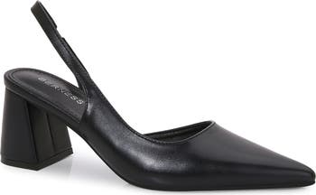 A d'Orsay silhouette brings a retro vibe to a slingback pump framed by a pointed toe and set on a sturdy block heel.