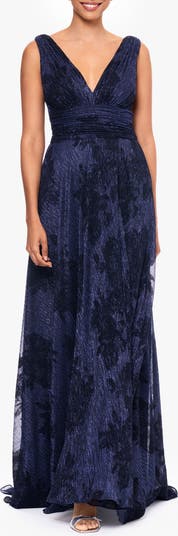 Flock Floral Metallic Crinkle Gown
