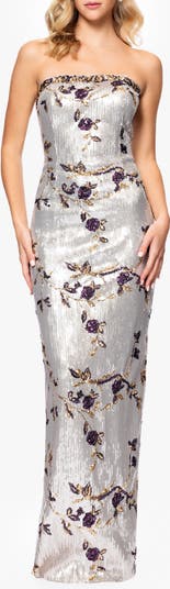 Sequin Floral Strapless Sheath Gown