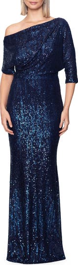A timeless sheath silhouette lends elegant energy to this one-shoulder gown drenched in light-catching sequins.