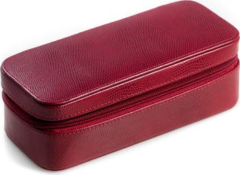 Keep your treasured timepieces safely stashed in a felt-lined case secured with a zip closure and luxe leather-reinforced exterior, ready for travel.