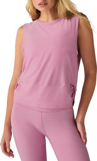 Airy and relaxed, this loose-fitting tank with a side twist is designed to flatter every shape.