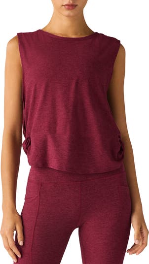 Airy and relaxed, this loose-fitting tank with a side twist is designed to flatter every shape.