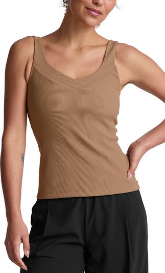 Cut from soft ribbed knit, this V-neck tank transitions easily from yoga class to couch lounging.