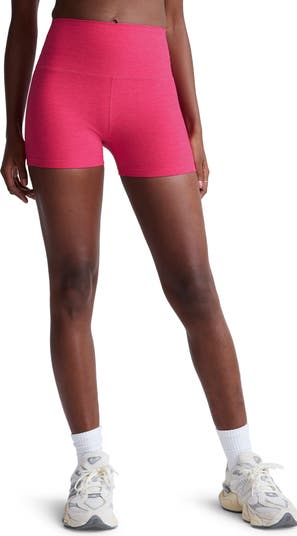 Space-dyed yarn creates the subtly heathered effect of these stretchy shorts that are perfect in or out of the gym.