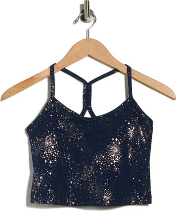 Bring a little sparkle to your day with this cropped racerback camisole cut from a soft, stretchy performance knit for maximum comfort on the go.