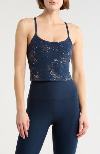 Bring a little sparkle to your day with this cropped racerback camisole cut from a soft, stretchy performance knit for maximum comfort on the go.