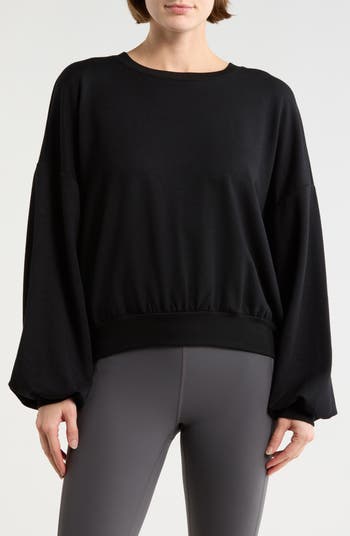 A lightweight knit sweatshirt looks effortless and chic after your work out and busy day of errands. Rib-knit banded hems comfortably shape this casual pullover.