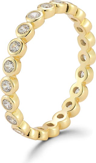 Perfect to stack, this slender gold-plated sterling silver eternity band showcases bezel-set cubic zirconia for dainty sparkle.
